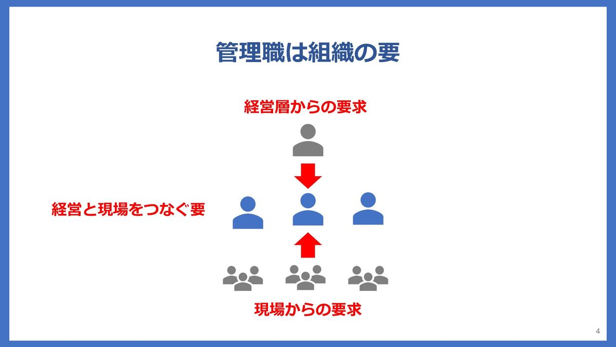 「経営層からの要求」と「現場からの要求」の間をつなぐ、まさしく組織の要であり、重要な役割なんですね。ただ、先ほども言いましたように、「管理職の罰ゲーム化」と言われるような、大変な状況に陥っているということです。
