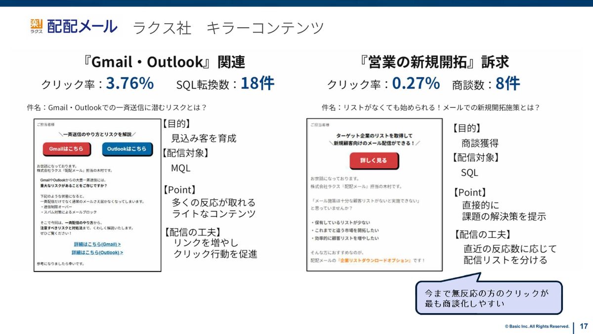 ラクスさんで言うと、事前の打ち合わせでも実はおうかがいしていたところもあったんですけれども、かなりIS(インサイドセールス)の方が入り込んでメルマガを回されているとすごく感じていまして。