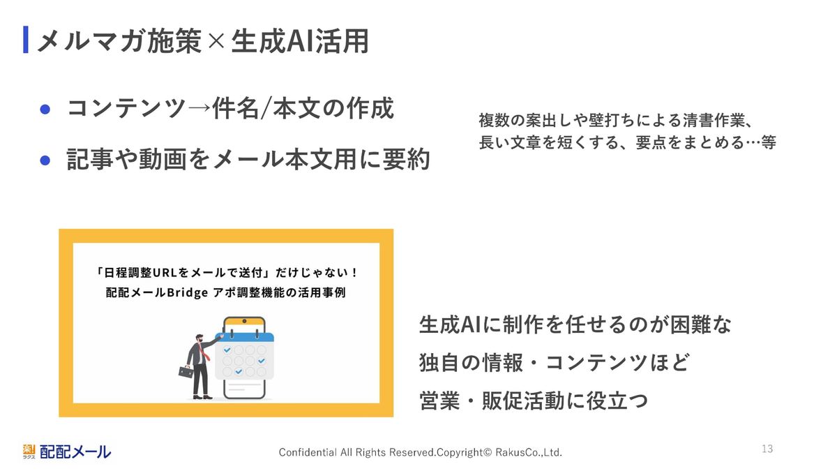 私からのお話で最後に、生成AI時代のコンテンツマーケティングでメールを送るとなると、メール配信における生成AIの活用どころが気になる方もいらっしゃると思うので、少し触れておきます。