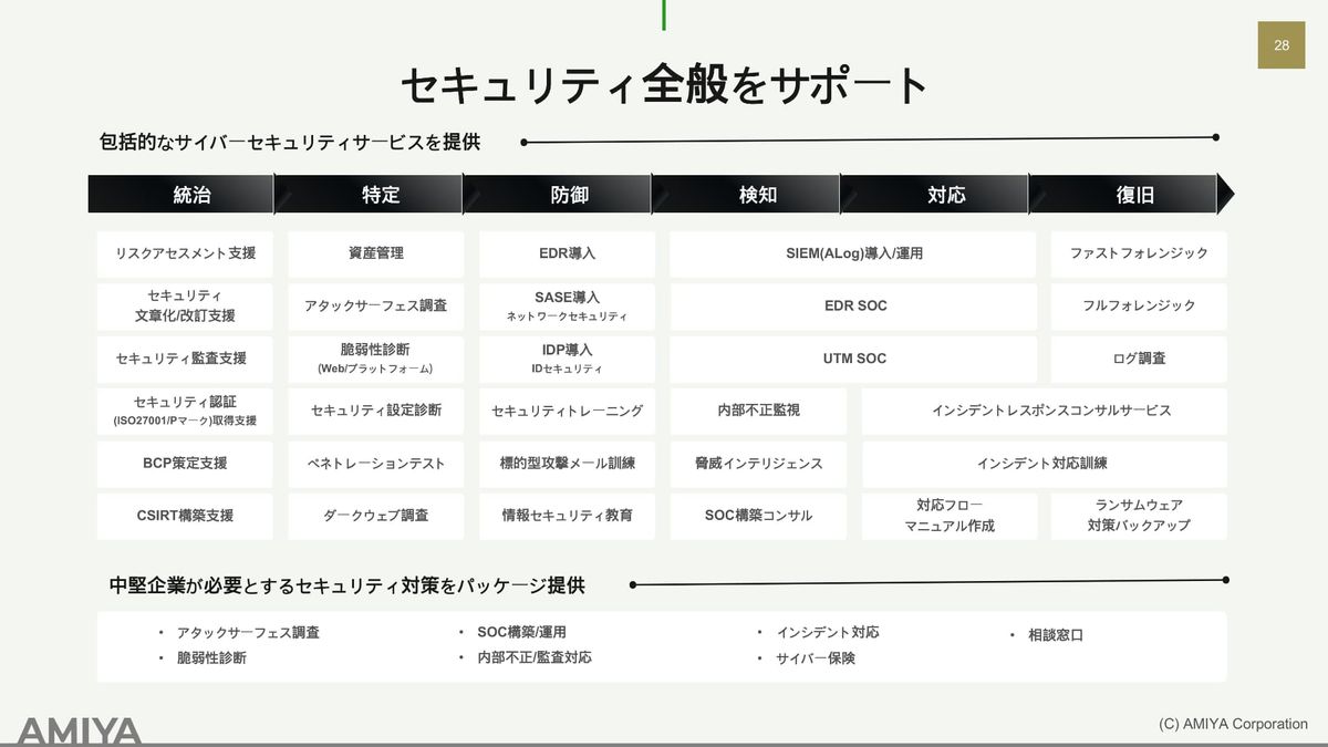 そのほかにもEDRのご投入や、サイバー攻撃の分野にも入ってしまいますが、SASE(ネットワークサービスとネットワークセキュリティサービスを統合したクラウドサービス)の導入、内部不正やサイバー攻撃でご利用いただけるような資産管理製品の導入サポートなどを弊社側で実施することが可能になっております。