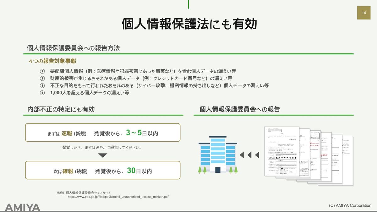 そしてもう1つ、個人情報保護法という観点ですね。万が一、情報漏えいしてしまった場合には、その速報を発覚後3日から5日以内に行う必要がございます。
