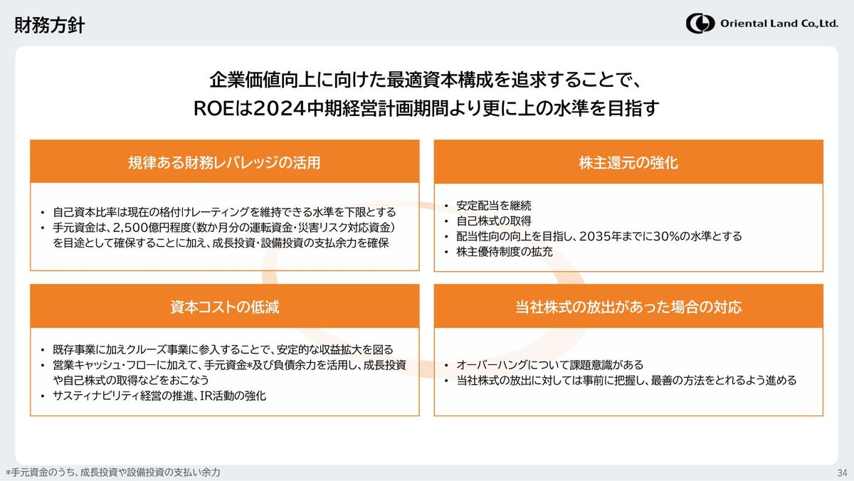 最近は財務についても、「地震などの災害が起きた時にどう対応をするのか?」といったご質問をいただくことがあるのですが、手元に2,500億円ほどの資金を保有しておくことで、一極集中のリスクに対応していくという考え方をお話ししています。