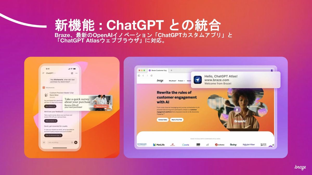 さらに、ChatGPTがWebブラウザ「ChatGPT Atla」をリリースした翌日に、私たちはAtlasユーザーへのWebプッシュ通知を即日サポートしました。「Braze Web SDK」がブラウザ上で問題なく動作することも確認しています。