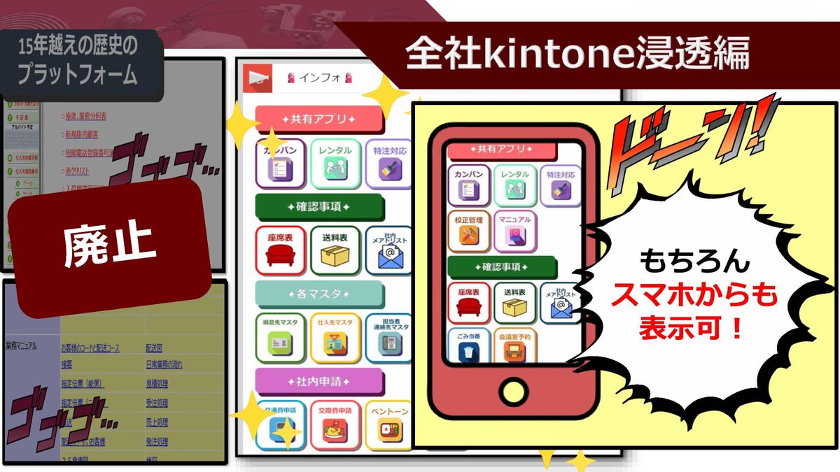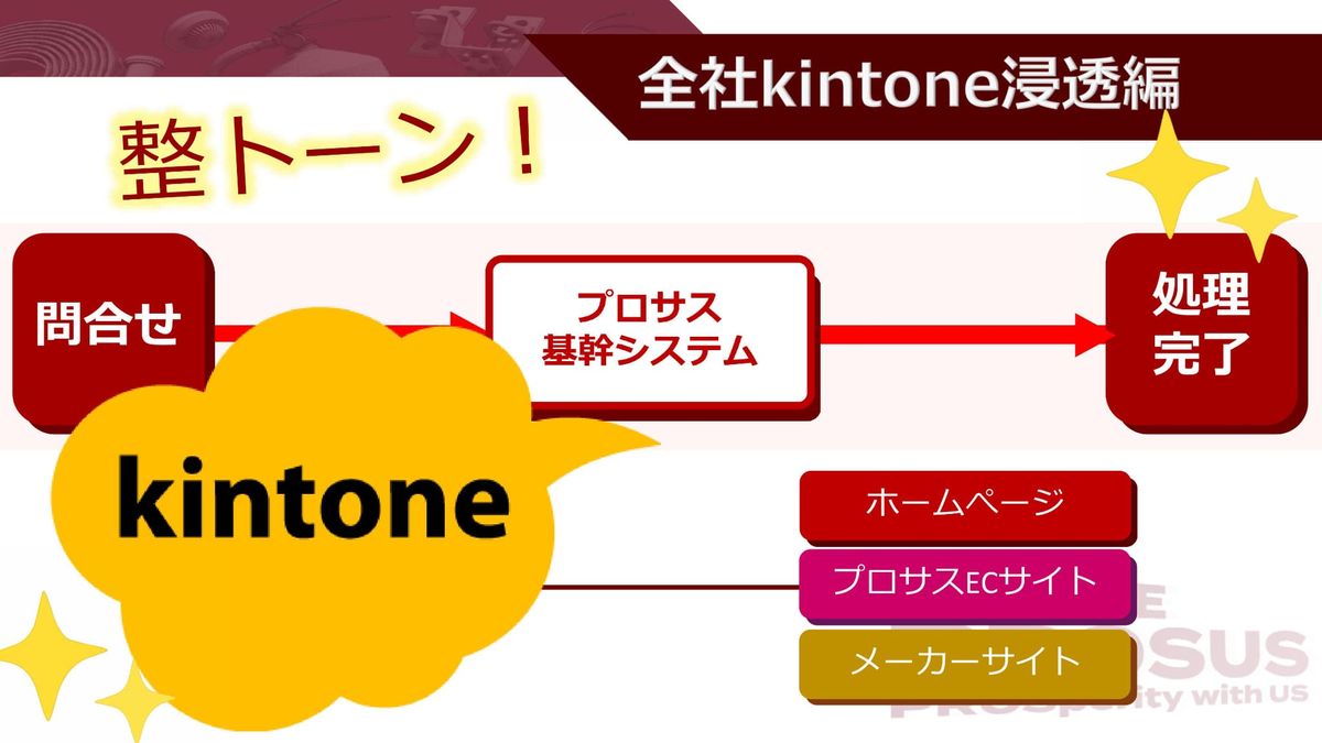 小田:違います、kintoneで整トーン! できたんですね。無事kintoneはプロサスのプラットフォームとなり得たのでした。