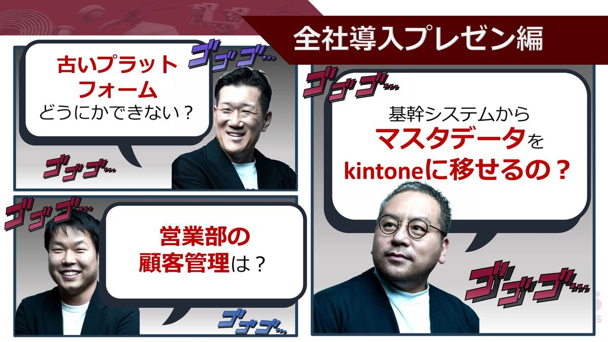 黒田:「古いプラットフォーム、あれどうにかできないかな?」「営業部の顧客管理もやりたいところだったんですよね」「基幹システムからマスタデータをkintoneに移せなかったら意味ないんじゃない?」。