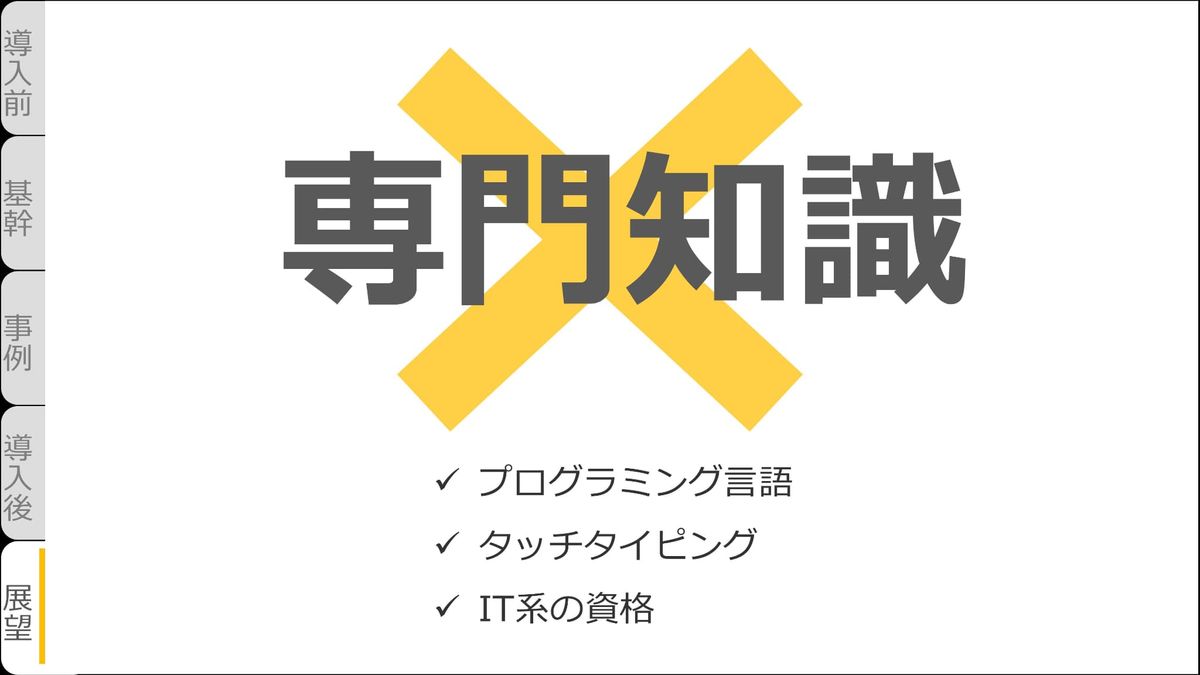そうしていると、要望を出す人にも「kintoneだったらこういうことができるんだな」ということがちょっとずつ広まっていったので、そこが良かったなと思っています。