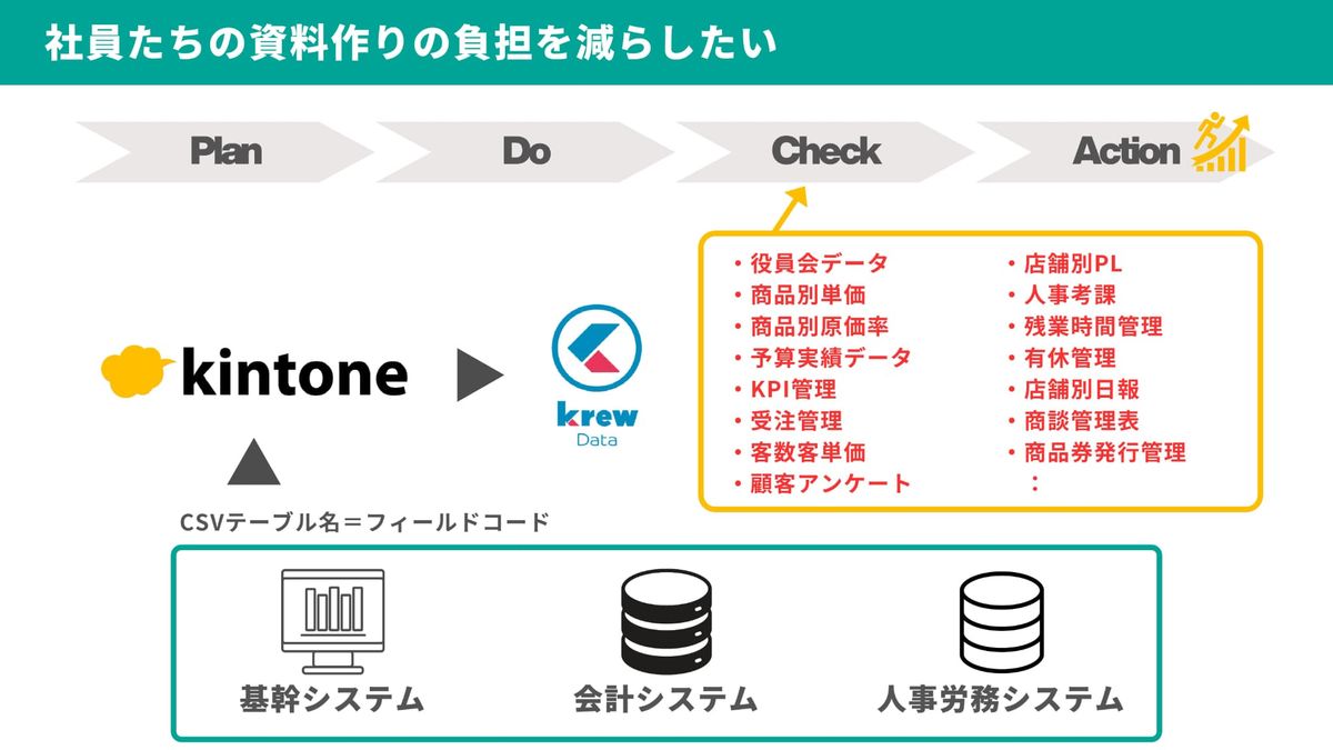 「Do」以外の「Plan」「Check」に関する情報はほぼ手作業で集計していました。これが大変でした。ある店長に聞けば、月例会議で使う資料を5営業日かけて作っていました。私はその資料を5分程度しか見ていませんでした。