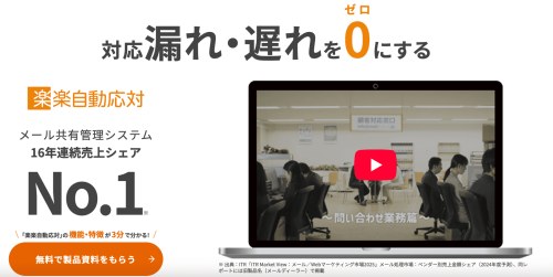 「楽楽自動応対」では、今までのメール対応をナレッジデータ化して、その中から回答文面を作成していくので、メール対応をすればするほどナレッジが溜まっていって回答精度が上がっていきます。