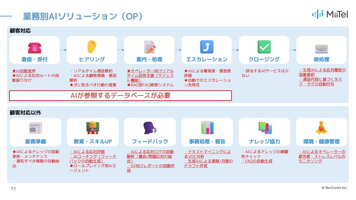 赤字が、今各社さんが出しているようなAIです。サポート向けのところで、上が業務プロセスのところで、顧客対応の業務プロセスと、顧客対応以外でこういうのをやっていくよね、というところです。