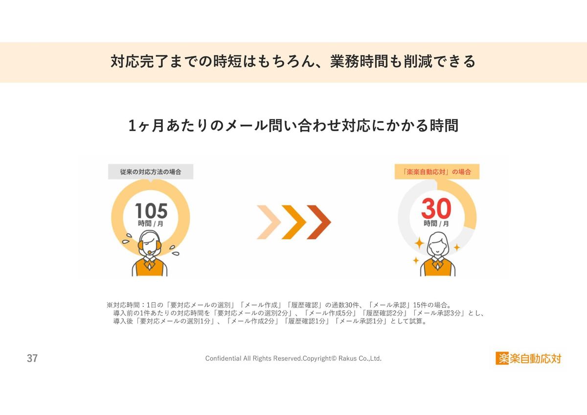 ここまで、メール対応のスピード向上に寄与する、さまざまな機能をご紹介しました。問い合わせ自動応対システムを活用することで、1ヶ月あたりの稼働時間を3分の1程度に圧縮でき、業務効率の向上も期待できます。