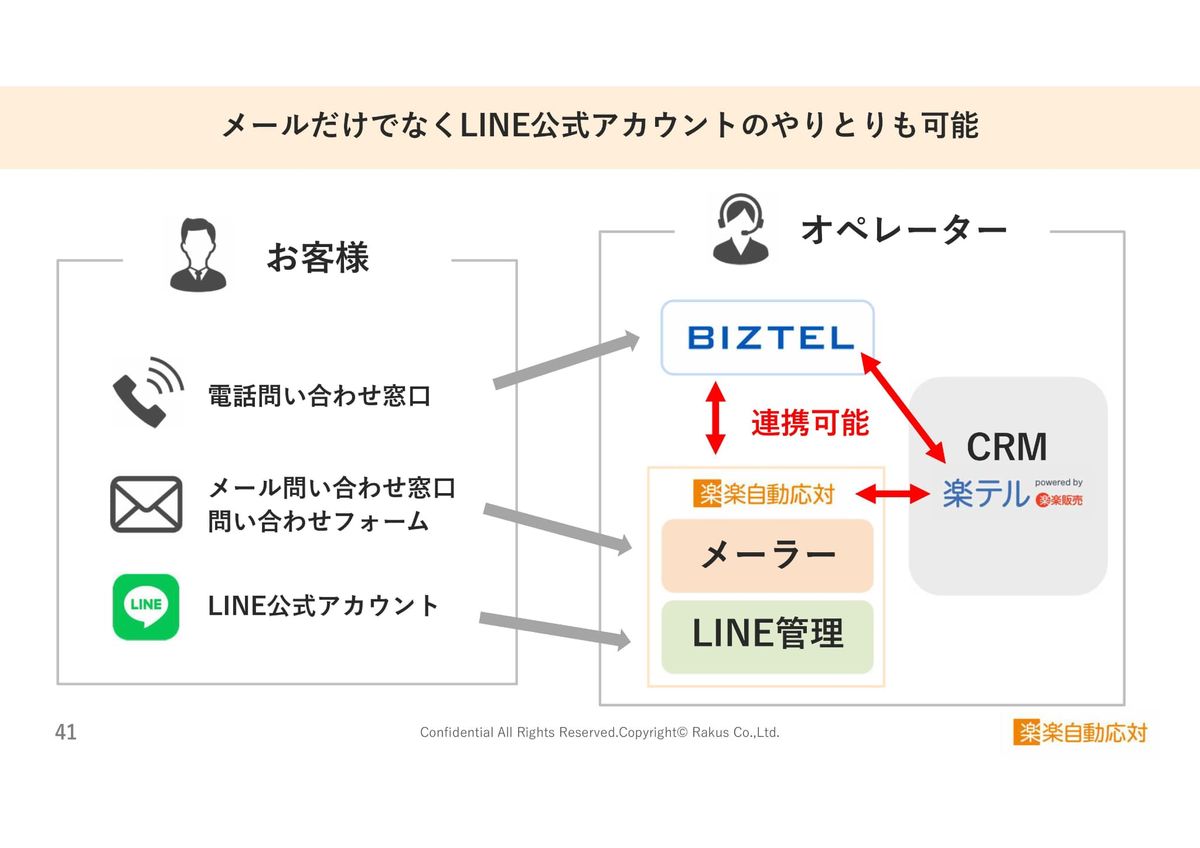 さらに、本日第1部で講演されたリンクさまのBIZTELと楽楽自動応対は連携しており、BIZTELで電話の着信を受けた際に、楽楽自動応対の過去対応履歴一覧画面へ、ワンクリックで遷移できます。BIZTELをご検討いただいているみなさまには、ぜひ楽楽自動応対も併せてご検討いただけるとうれしいです。