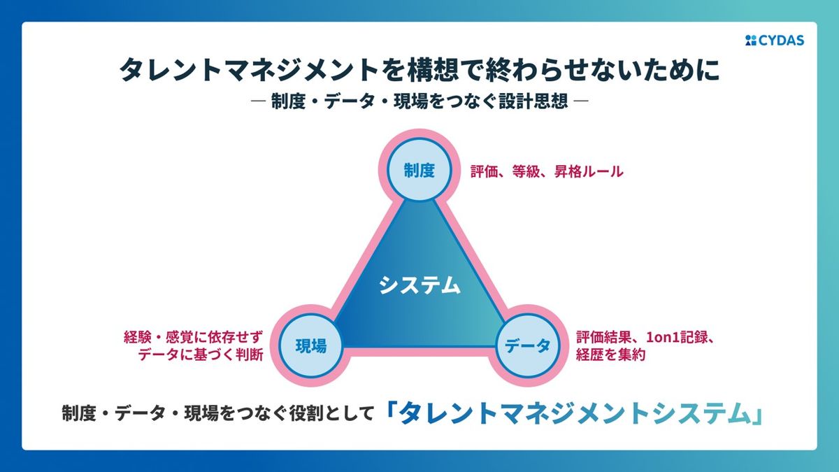 例えば管理職、現場の一般社員、経営層。そういった方をつなぐ役割としての、タレントマネジメントシステムを有効に利活用する姿が、求められるあり方だと思っております。