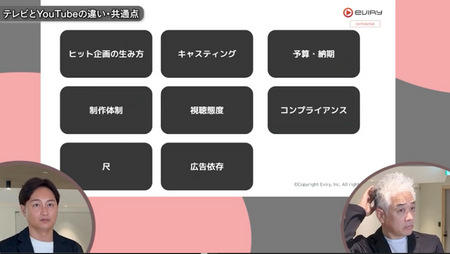 元『ダウンタウンのDX』の演出・プロデューサーの西田二郎氏と株式会社エビリーによる対談イベントです。テレビ業界から見たYouTubeの未来や、企業がいかにしてYouTubeを活用すべきかについて、両者の視点から語られます。
