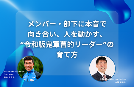 ゲストはアドベンチャーレースで日本唯一のプロチーム「EAST WIND 」を約30年に渡り牽引して世界中を冒険してきた鬼軍曹こと田中正人氏。田中氏と共にまさに今必要とされるリーダー像――「令和版鬼軍曹的リーダー」について掘り下げます。