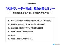 「次世代リーダー育成」緊急対策セミナー ~中堅企業の事例に学ぶ「管理職になりたくない」問題への処方箋~