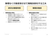 ここは個人差がものすごくあって、ぜんぜん気にしない人もいらっしゃるんです。例えばですが、話をよくよく聞くと、そもそも睡眠環境がぜんぜんなってない方もいらっしゃるし、本当にさまざまです。なので、改善が必要だと認識してもらうことはとても大事です。
