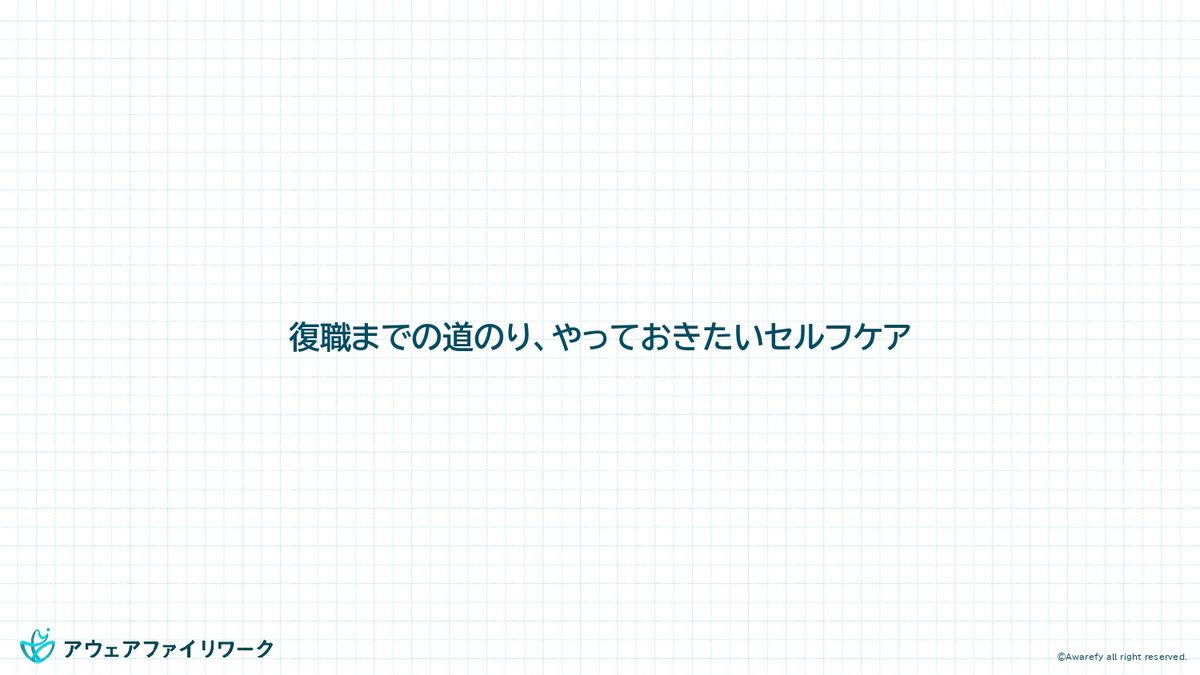 井上:セルフケア。そうですよね。さっきの(休職は)たぶん1年とか、人によって期間が違うんですけど、やはり前とは変わった自分で復職しないと、また僕みたいになるんです。