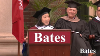 ありがとうございます。素敵なケースですね。卒業生のみなさんにもお手伝いをお願いします。ご家族やご友人、そして後方の教職員のみなさんもです。ここで全員でひとつ実験をしてみたいと思います。ここベイツの卒業式では前例がなく、世界中のどの卒業式でもおそらくやっていないことを試したいのです。