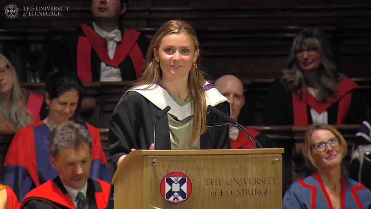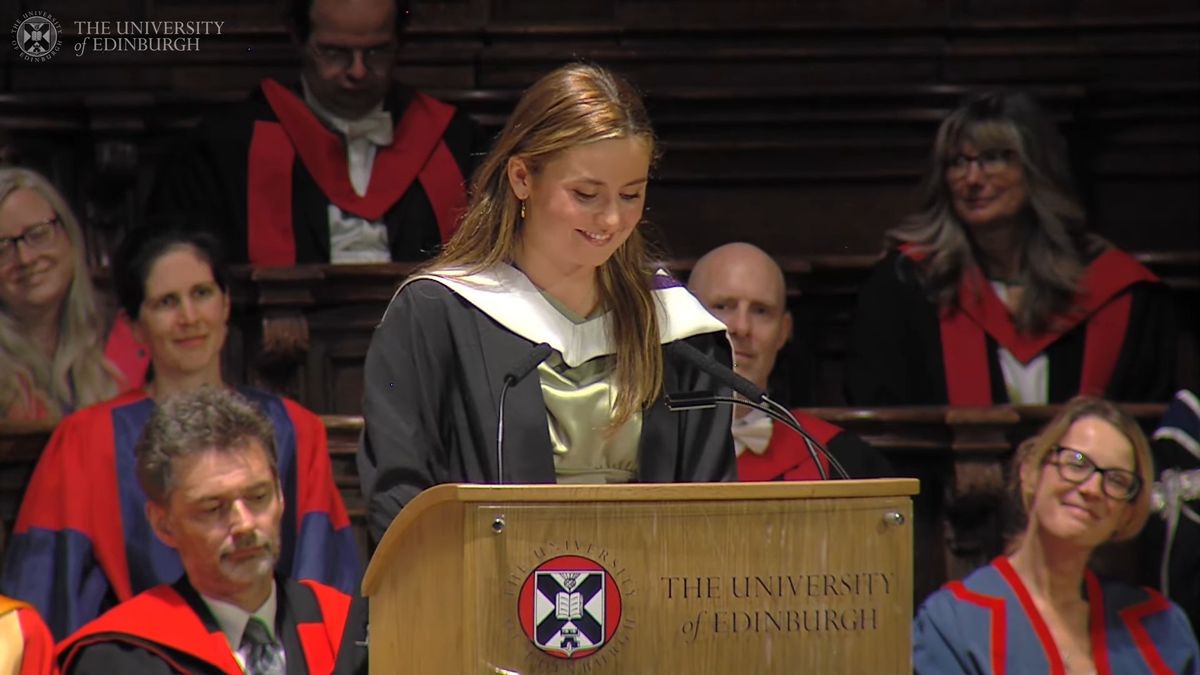 だから、このすばらしい大学を巣立って、それぞれの未来へ踏み出していく私たちに、どうかこの瞬間を覚えていてほしい。私たちはただの「卒業生」ではありません。これから新しく生まれていく「エディンバラのレジェンドたち」の、次の世代なんです。