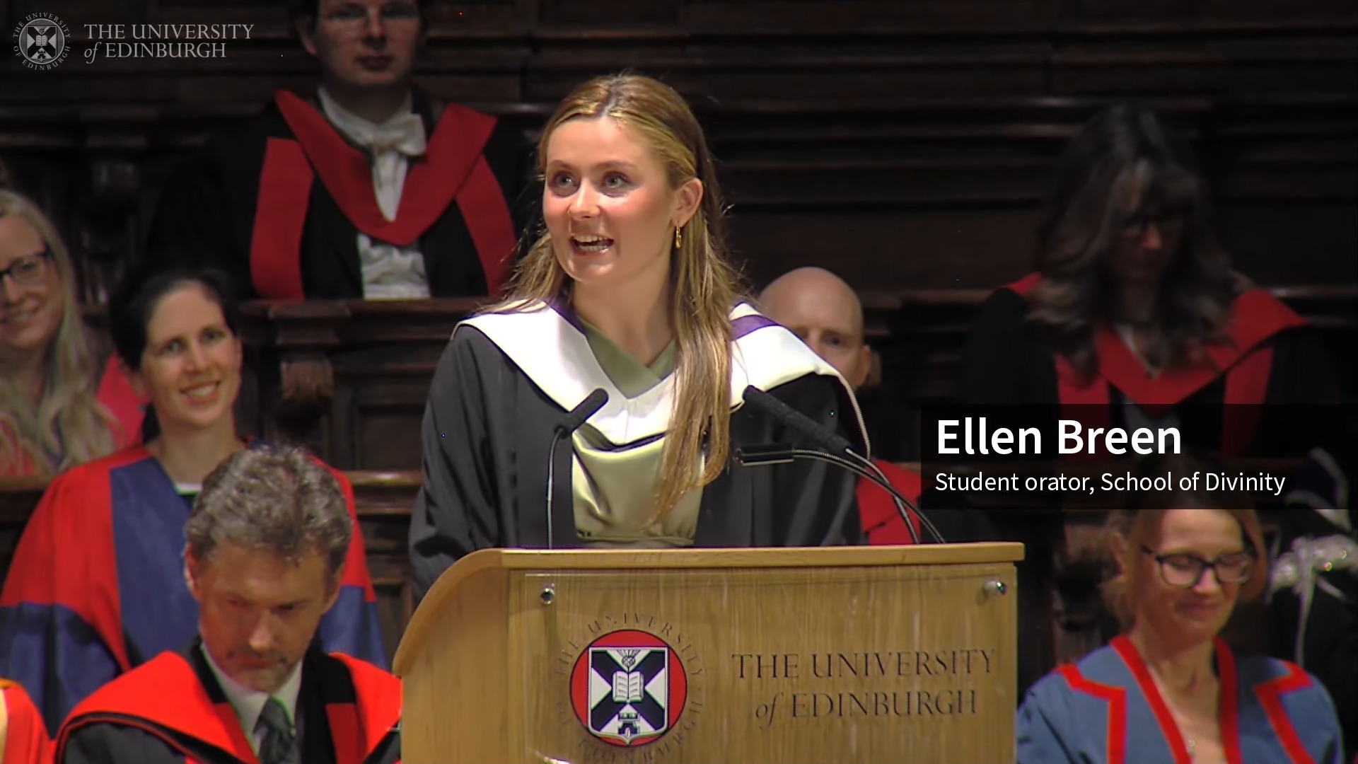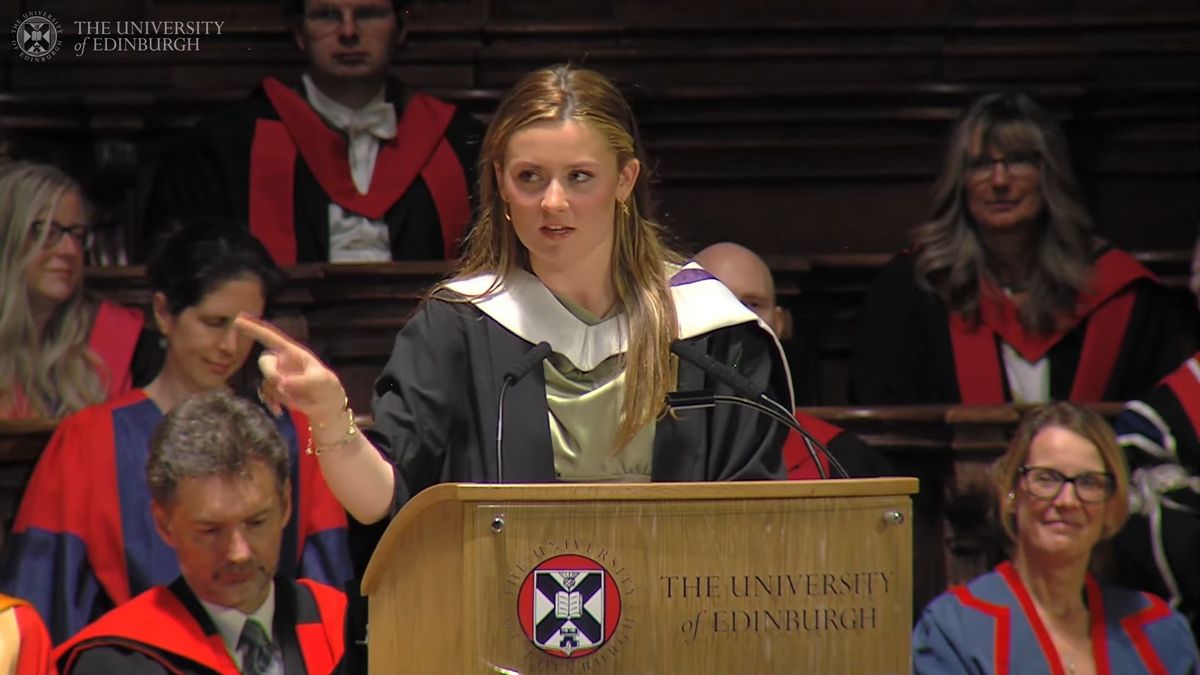 ・エディンバラ大学卒業生のエレン・ブリーン氏は、コロナ禍を越えて「怖い場でもやり切れた」自分たちの4年間を振り返り、まずは今の自分を誇ろうと呼びかけました。