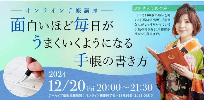 公式手帳発売記念!オンライン講座「面白いほど毎日がうまくいくようになる手帳の書き方」
