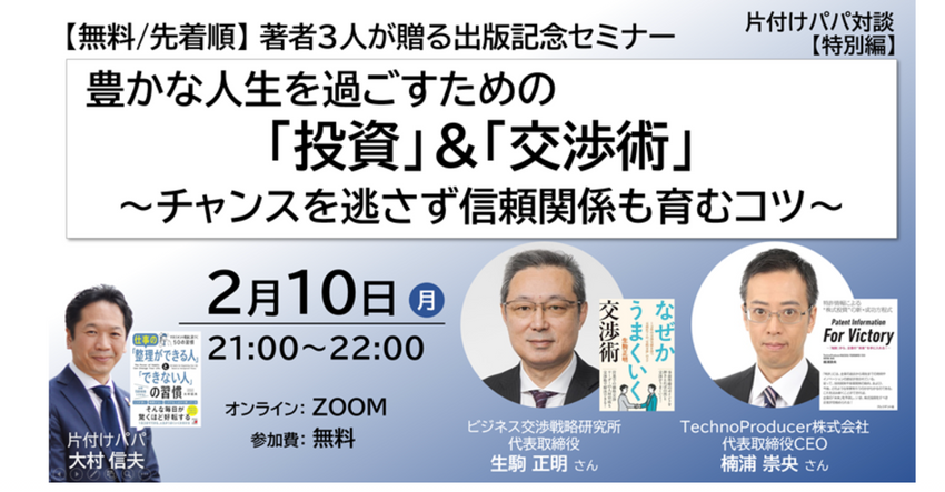 片付けパパ対談【特別編】豊かな人生を過ごすための「投資」&「交渉術」 ~チャンスを逃さず信頼関係も育むコツ~