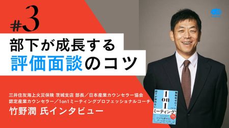 「人事評価が面倒くさい」「ネガティブな評価をつけるのが憂鬱」そんな悩みを抱える管理職も少なくないのではないでしょうか。今回は、『離職率ゼロ!部下が辞めない1on1ミーティング!』著者で三井住友海上火災保険 茨城支店 部長の竹野潤氏に「部下が成長する評価面談のコツ」についてインタビューしました。