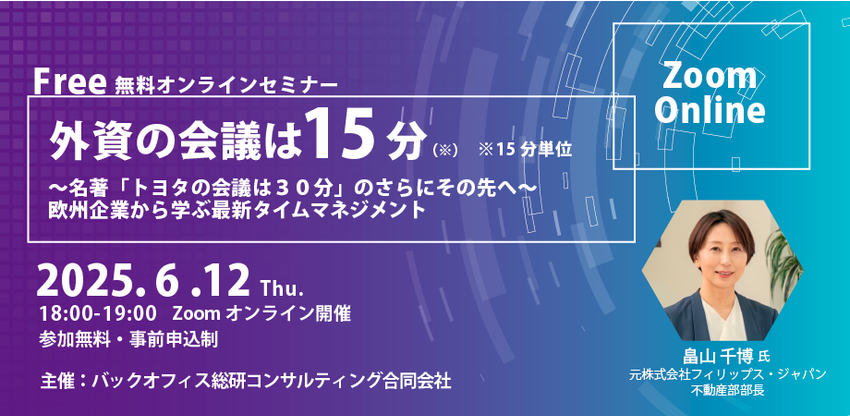 2021年に話題となった書籍『トヨタの会議は30分』。この本が伝えたのは、単なる時短ではありません。 「時間を制限することで、会議の質と実行力を高める」という、逆転の発想でした。今回のイベントは外資企業で18年の経験を持つ畠山千博氏が登壇し、リアルな事例とともに、「決めるための会議設計」を紹介します。