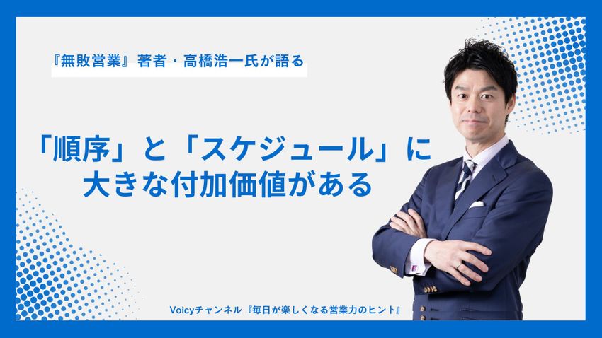 『無敗営業』をはじめ数々のビジネス書を出版し、東京都千代田区で「かぴばら書店」という本屋も運営する高橋浩一氏が、営業力を人生や仕事に活かすコツを配信するVoicyチャンネル「毎日が楽しくなる営業力のヒント」。今回は、「順序」と「スケジュール」の重要性について語ります。