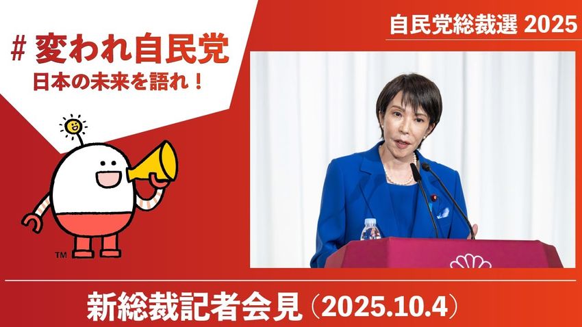 2025年10月4日、石破茂首相の後継を決める自民党総裁選において、高市早苗 ・前経済安保相が第29代総裁に選出されました。高市早苗新総裁の記者会見の模様を全文書き起こしでお届けします。