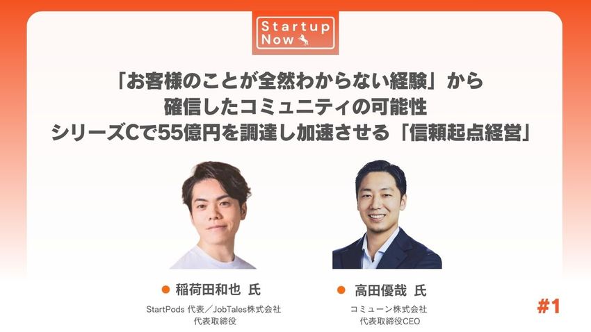 スタートアップの最前線を「おいなり」こと稲荷田和也氏との対談形式でお届けする『Startup Now』。資金調達を実施したばかりのスタートアップ起業家や投資家との対談を中心に、単なる情報にとどまらない想いや価値観の源泉、リアルな人となりを深掘りすることで、スタートアップの魅力や奥深さをお届けします。今回は、コミューン株式会社 代表取締役CEO 高田優哉氏との対談の模様をお届けします。