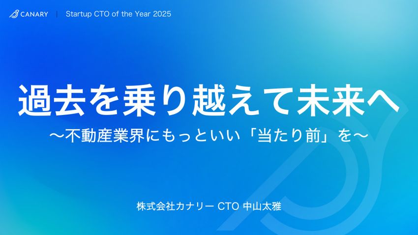 「Startup CTO of the Year」は、次世代CTOたちが、挑戦の軌跡を証明する唯一無二のピッチコンテストです。本記事では、不動産賃貸領域のDXを進めるカナリーCTOの中山太雅氏のピッチの様子をお届けします。