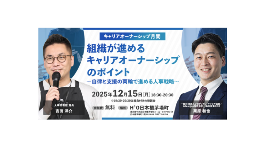 キャリア自律をどう推進すべきか──多くの企業でこの問いが繰り返し聞かれるようになりました。「進め方がわからない」「制度が浸透しない」「AI対応が優先で後回しになる」といった声に対し、本イベントでは、人事の歴史に精通する人事図書館・吉田洋介氏が、キャリアオーナーシップ推進の意義と本質をわかりやすく解説します。