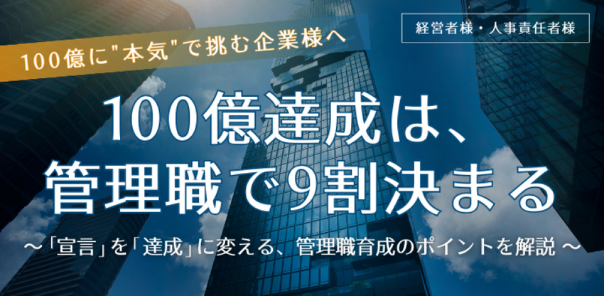 100億達成は、管理職で9割決まる ~「宣言」を「達成」に変える、管理職育成のポイントを解説~