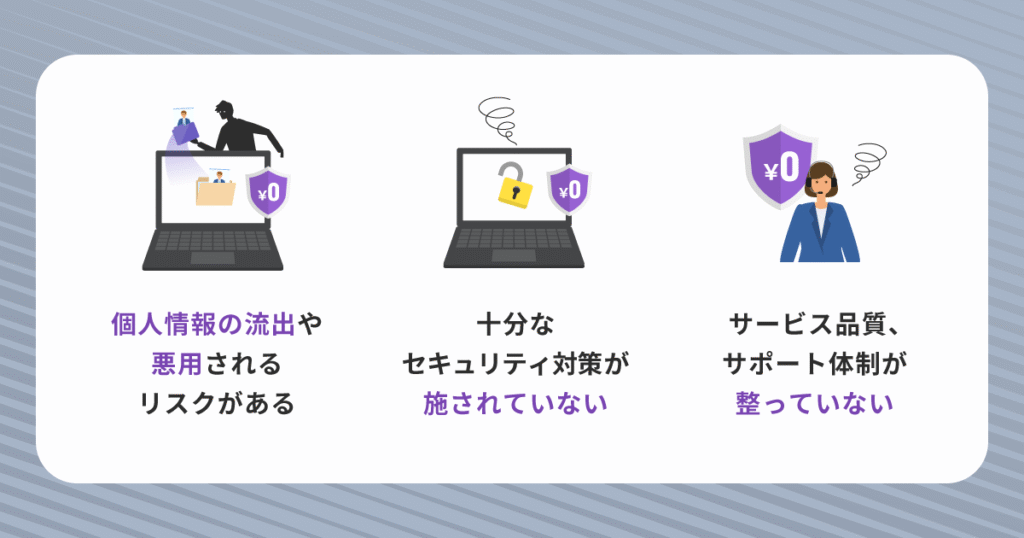 無料VPNはコストの面で魅力的に思えますが、セキュリティ上のリスクが大きいため利用はおすすめしません。