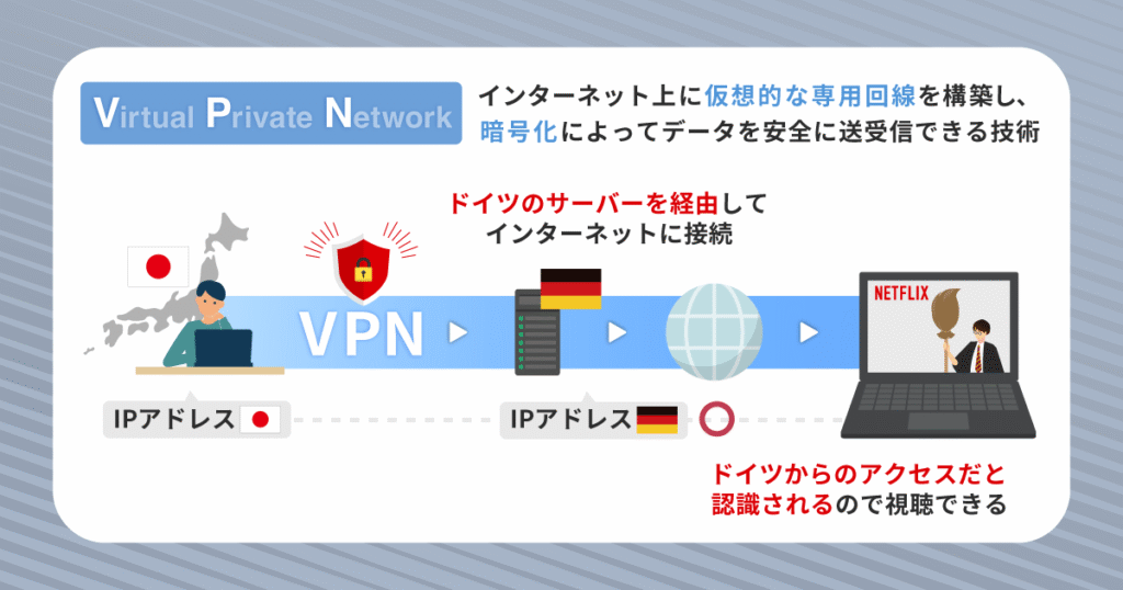 VPNの詳しい仕組みなどについては記事の後半「そもそもVPNとは?なぜ海外から日本のテレビを見られるの?」で取り上げているので、ぜひ参考にしてください。