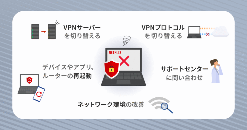 ここでは、VPN経由で海外から日本のテレビを見られない場合の対処法について解説します。