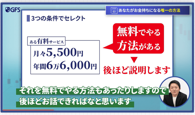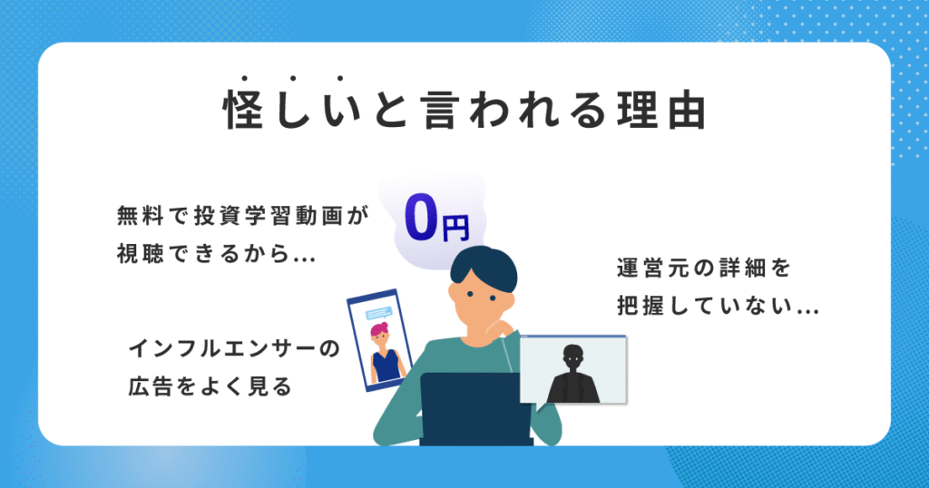 これだけを聞くと「なぜ無料なの?」「投資講座=高額な商材を売りつけられそう」「動画を視聴したら何かに勧誘されそう」など、ネガティブなイメージを持ってしまう方も少なからずいます。