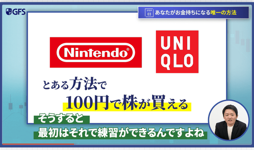 また任天堂やユニクロの株は、本来なら数十万から数百万で買えるものですが、100円で投資できる方法もあるみたいなんです。
