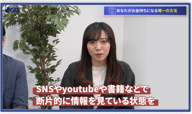 最終的にはGFSへの誘導が目的となりますので、バフェッサの動画を視聴し、GFSへの入校が不要だと感じた方は視聴をやめるだけです。
