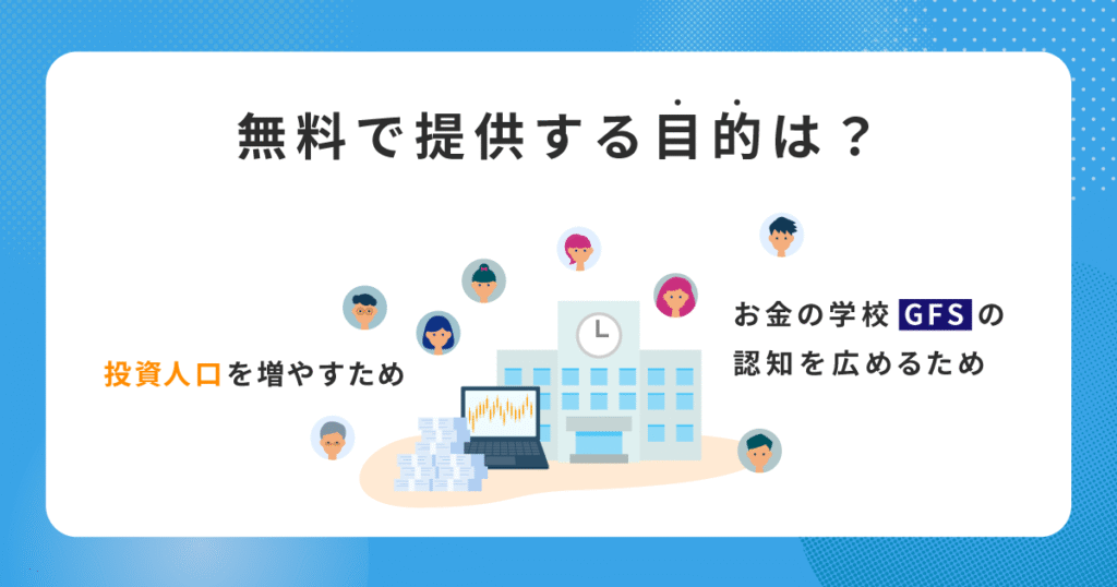 バフェッサの制作元であるGFSは、「投資人口を増やす」ということを使命の1つとして掲げ、学校を運営しています。