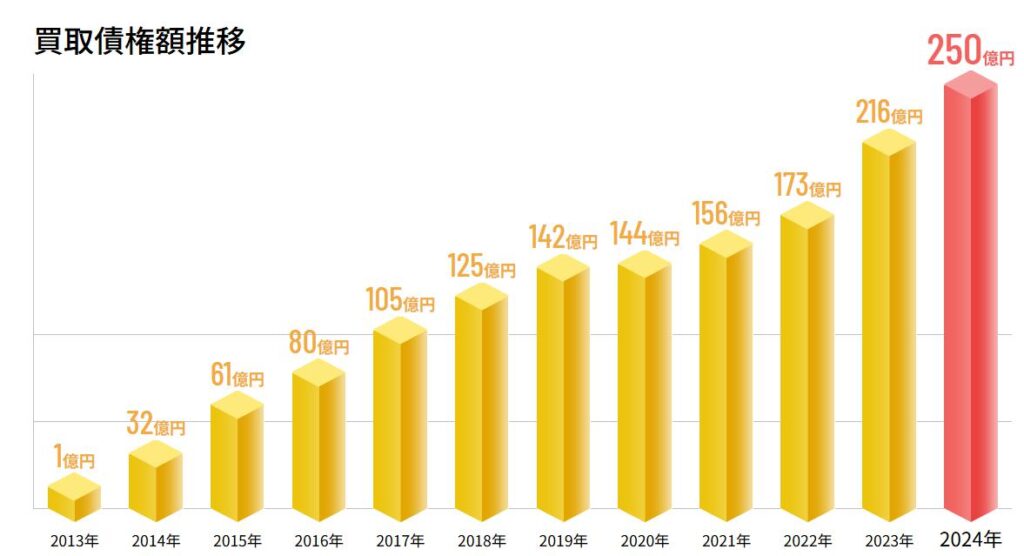 さまざまな業種での実績があり、買取可能金額に制限もないことから、個人事業主から大企業まで幅広く利用できる点もメリットです。