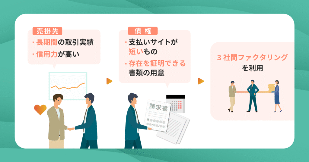 - 支払いサイトが短い債権を利用する(長くても2ヶ月程度)