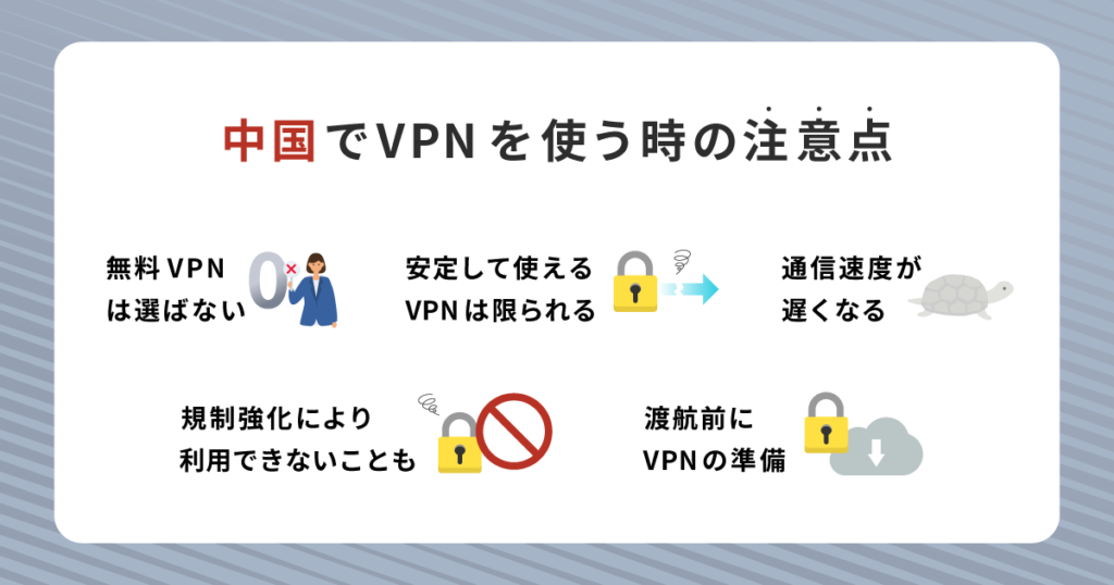 現地の規制に反する使い方をすれば思わぬトラブルに巻き込まれる可能性もあるため、中国国内の法律や規則を理解し、リスクを認識した上で適切に利用することが重要です。