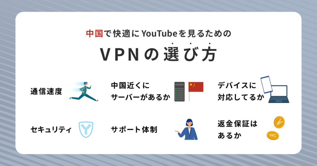 ここでは、中国でYouTubeを快適に見るためのVPNの選び方を解説します。