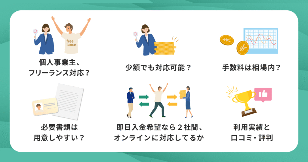 個人事業主やフリーランスがファクタリングを利用する際には、自分のニーズに合ったサービスを選ぶことが何より重要です。