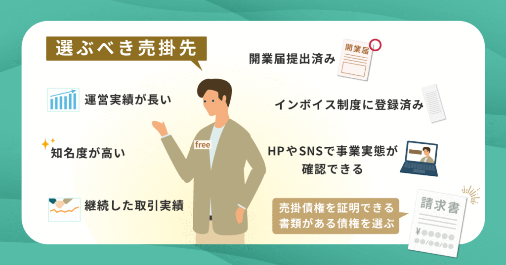 - ホームページやSNSで事業実態を確認できる売掛先を選ぶ