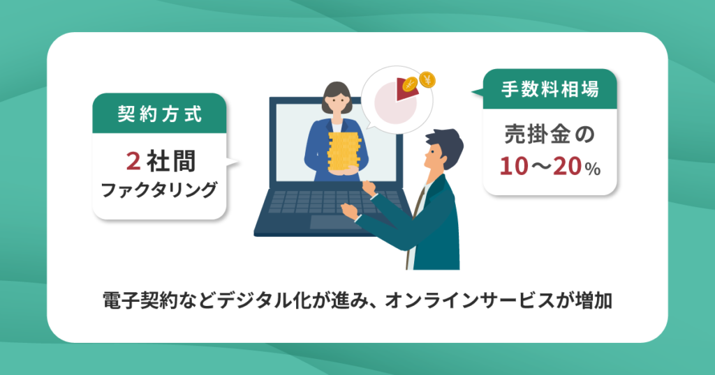 オンライン完結型の多くは、売掛先が取引に関与しない2社間ファクタリングが中心です。