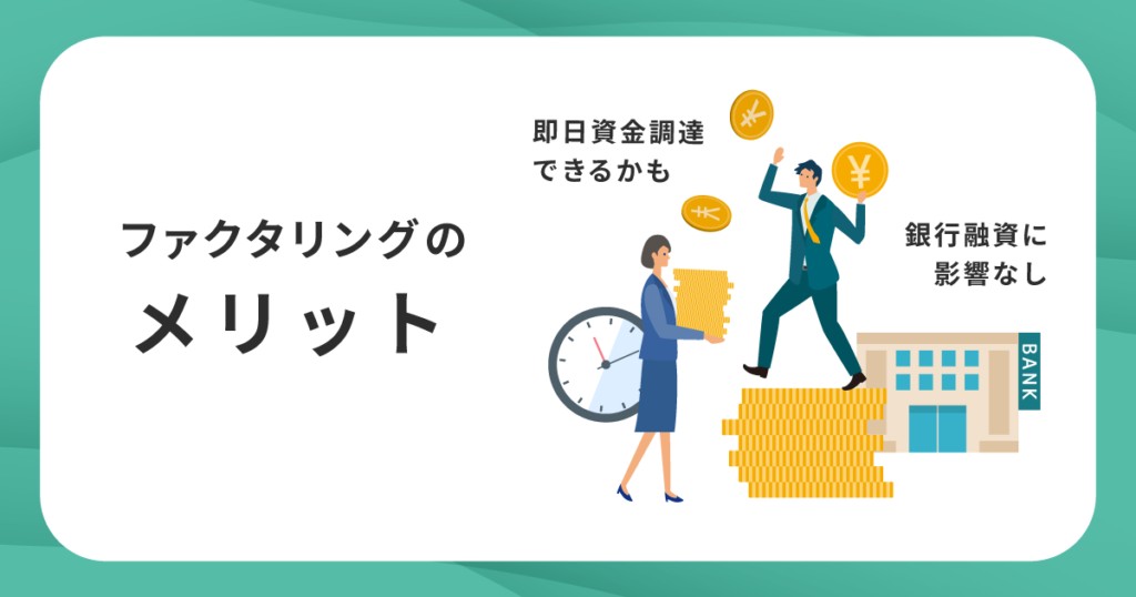 ですが、取引先企業(売掛先)にファクタリングの利用を通知する必要があるため、関係性に影響を与える可能性があります。