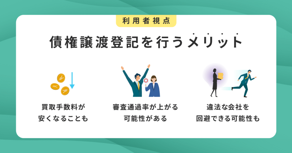 では、債権譲渡登記を行うことで、ファクタリング利用者にはどのようなメリットがあるのでしょうか。